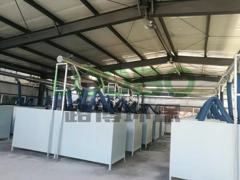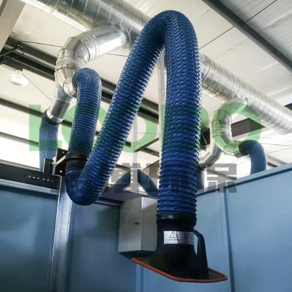實(shí)訓(xùn)室排煙系統(tǒng)現(xiàn)場所需除塵的工位共包含20個(gè)焊接工位,每個(gè)工位煙塵收集采用一套2.5m長萬向吸氣臂的形式。吸氣臂規(guī)格:φ150mm*2500mm每條支管道配套一個(gè)手動風(fēng)閥;