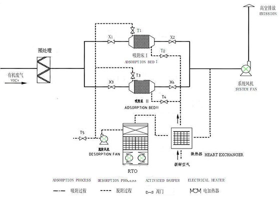 2、如果是成分特別復(fù)雜的工業(yè)有機(jī)廢氣,處理的方式為:“吸附+脫附+催化燃燒”工藝。經(jīng)過(guò)催化燃燒后的有機(jī)廢氣轉(zhuǎn)化為二氧化碳和水直接排放,工藝簡(jiǎn)單而且處理效果好,催化燃燒后的預(yù)熱可以再利用。